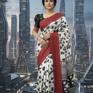 White and black saree
