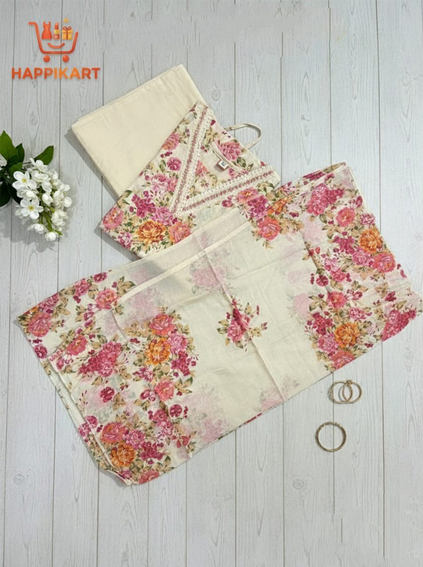 Cream Flora cotton Kurtha set